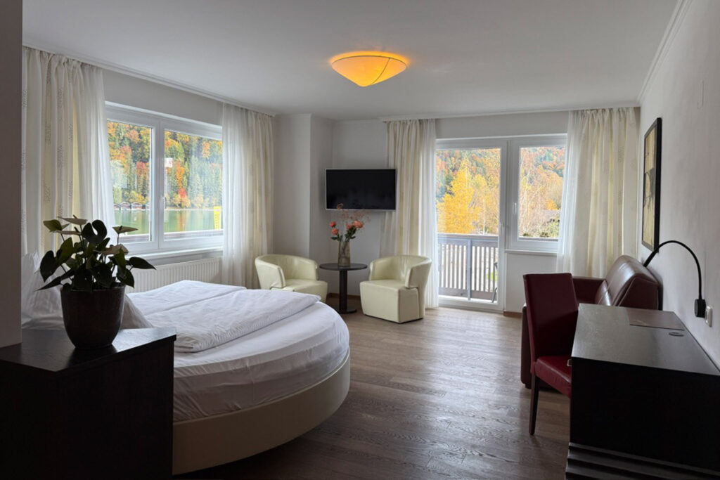Einblick in dein Urlaubszuhause am Wolfgangsee – entdecke die Junior Suite im Seehotel Lilly in Bildern.