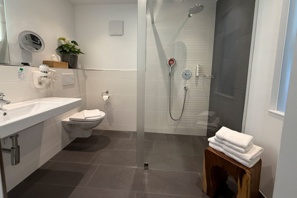 In unserem 32 m² großen Mehrbettzimmer Loggia finden bis zu 2 Erwachsene und 2 Kinder Platz.