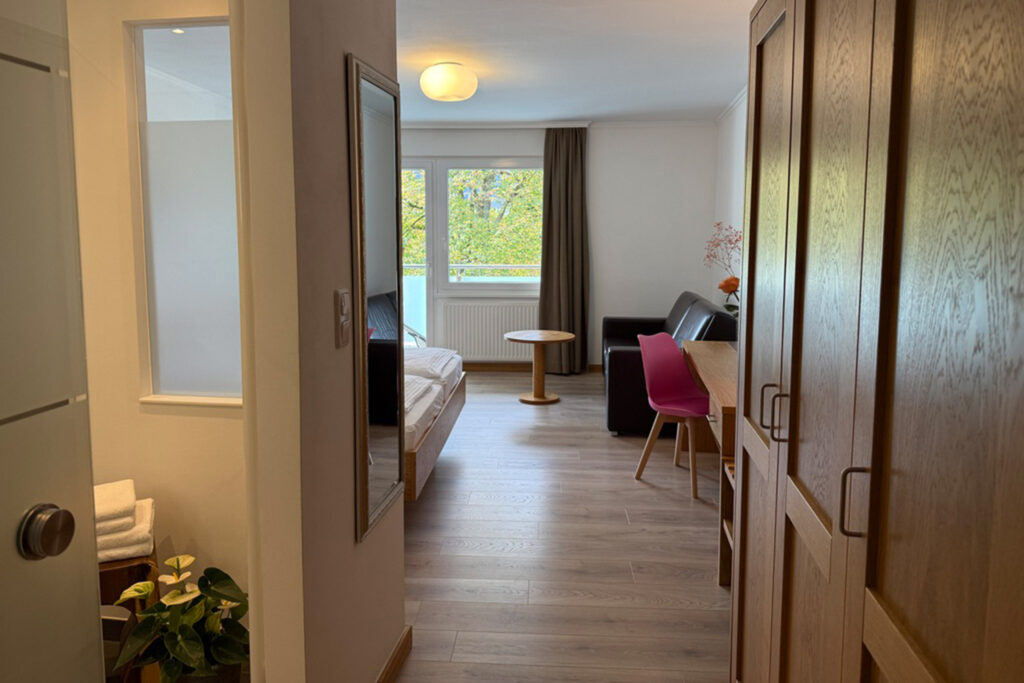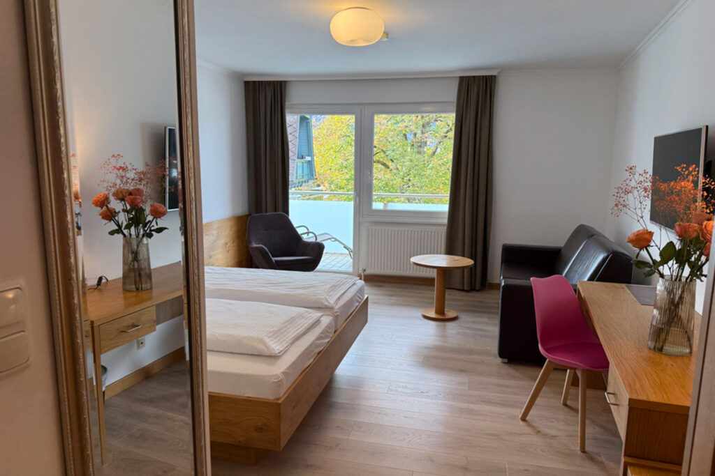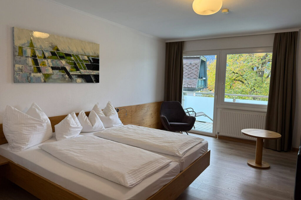 Einblick in dein Urlaubszuhause am Wolfgangsee – entdecke das Mehrbettzimmer Loggia im Seehotel Lilly in Bildern.