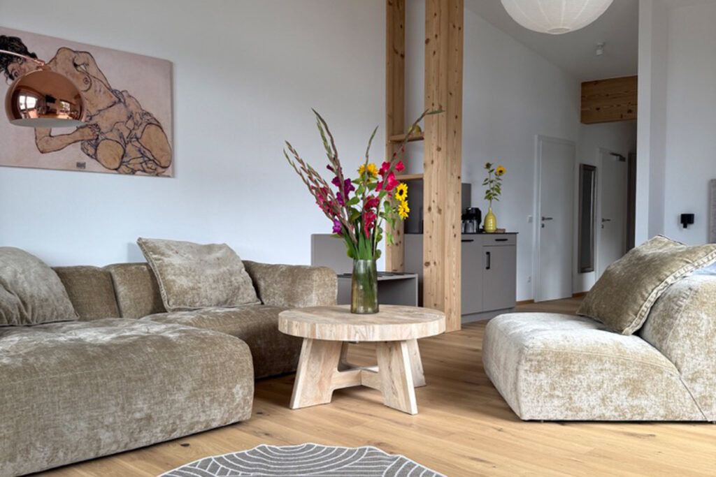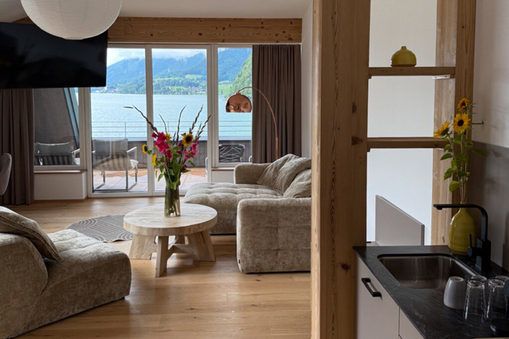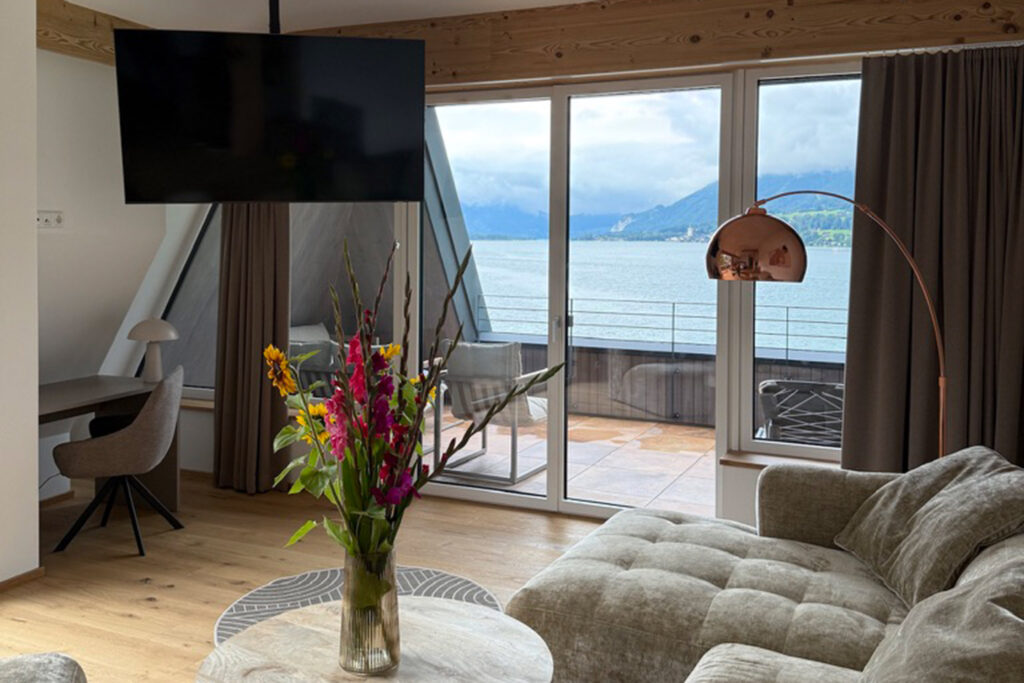 Einblick in dein Urlaubszuhause am Wolfgangsee – entdecke das Penthouse 1 im Seehotel Lilly in Bildern.