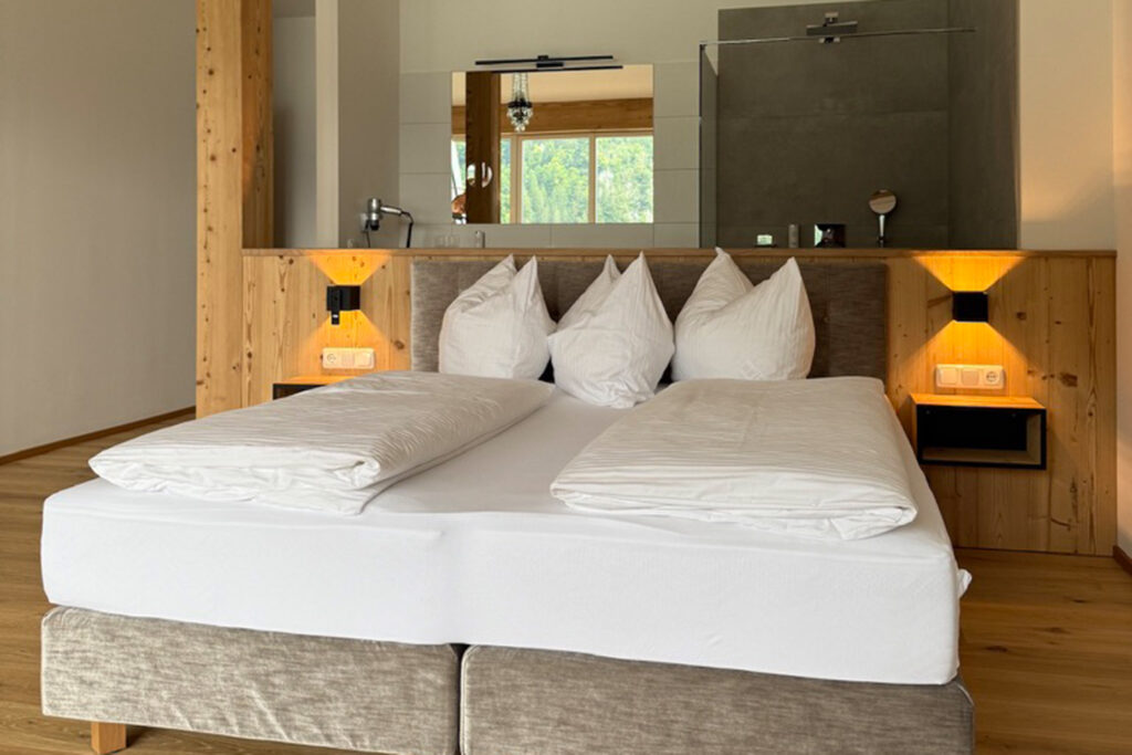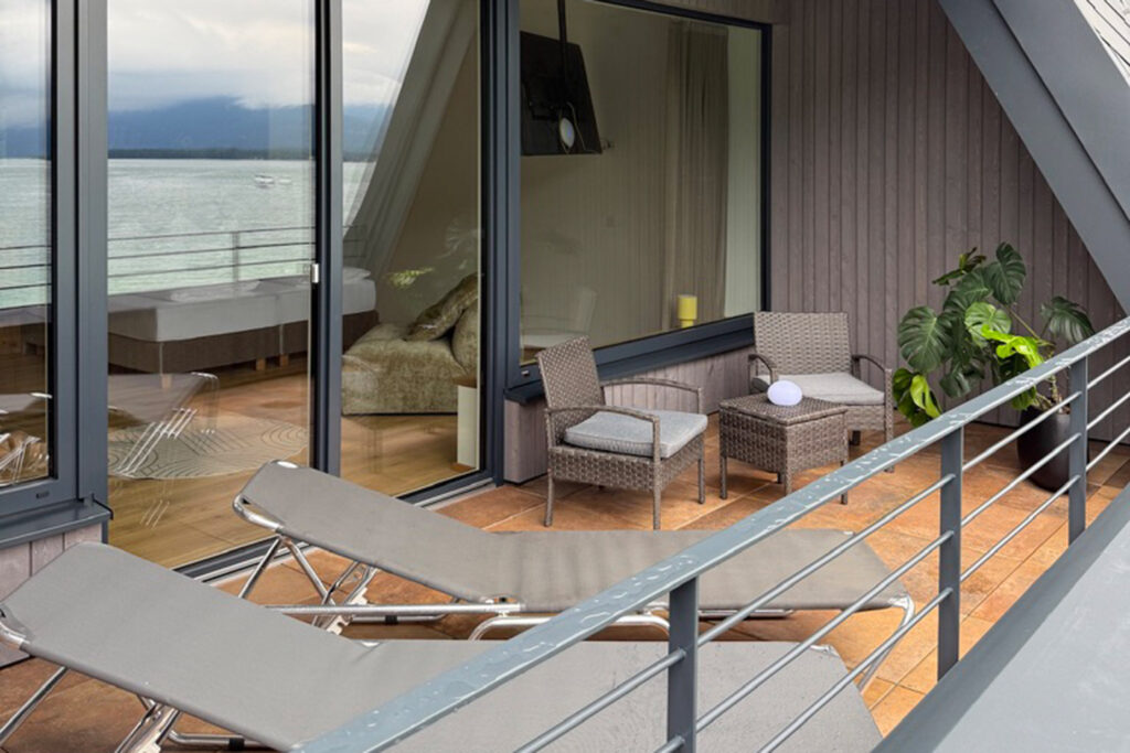 Genießen Sie unvergessliche Momente zu Zweit dank Superior Schlaf- und Wohnzimmer, großzügigem Bad und Teeküche. Das Highlight ist Ihre private Terrasse mit Sonnenliegen und direktem Blick auf den Wolfgangsee!