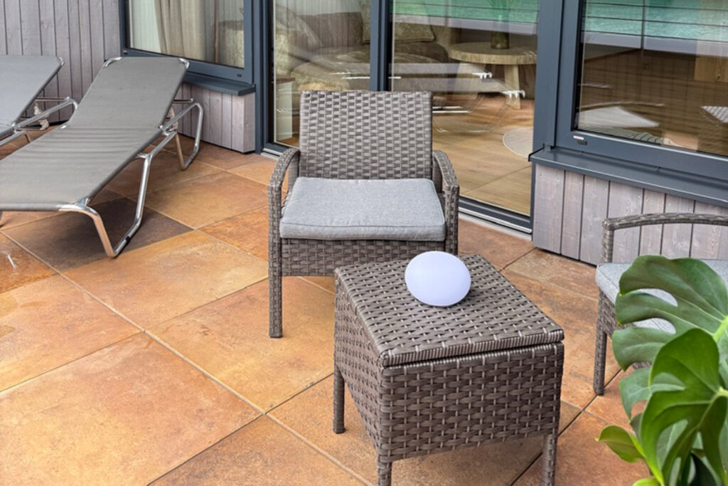 Loggia mit Sonnenliege und Sitzmöglichkeit
